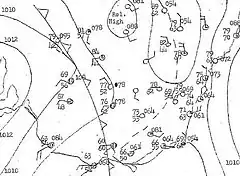 The conditions on New Year's Day, 1947 were meteorologically sound for the formation of a storm. The day was hot and humid, with the maximum temperature recorded during the day being 32.7 °C (90.9 °F) and humidity reaching 73%.[12] Many Sydneysiders travelled to the beaches along the coastline to benefit from the afternoon sea breeze. The general weather pattern for Sydney in summer is movement from the west to the east—from over the Blue Mountains to across the city and into the Tasman Sea.[1]