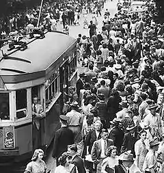 Convertible cars, in fashion at the time of the storm, also sustained severe damage, mainly punctures to the soft-top roofs, and trams that ran through the eastern suburbs at the time also suffered damage.[7][13] According to veteran meteorologist Richard Whitaker, "Sydney was staggered by the enormity of the incident, as there had not been even a remotely similar storm in living memory".[4] The problems were exacerbated due to a lack of building materials available for use in repair work, a result of the Second World War which had concluded only 18 months prior. This contributed to the delays which resulted in houses still covered with only temporary tarpaulins several years later.[4]