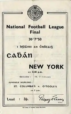 Cavan beat Meath in the home final, to get revenge for defeat in the 1949 All-Ireland Final. For the first time, New York received a bye to the final, where they defeated the "home" champions.[1][2][3][4][5]