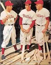 ![]() Granny Hamner, Del Ennis, and Richie Ashburn of the 1950 Phillies "Whiz Kids" in a promotional photo. | |