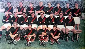 The 1950 VFL Grand Final was an Australian rules football game contested between the Essendon Football Club and North Melbourne Football Club, held at the Melbourne Cricket Ground on 23 September 1950. It was the 53rd annual Grand Final of the Victorian Football League, staged to determine the premiers for the 1950 VFL season. The match, attended by 85,869 spectators[note 1] , was won by Essendon by 38 points, marking that club's tenth premiership victory.