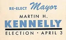 Hunter attacked Kennelly, characterizing him as a "do-nothing mayor".[6] He called for the defeat of not just Kenelly, but of the political machine that had put him forth for mayor.[7] He argued that big-city Democratic machines needed to be defeated in order to save the country.[7]