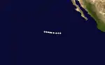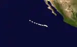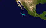 A hurricane developed on September 15 southwest of Baja California and dissipated seven days later.[1] Moisture from Five produced 2 in (51 mm) of rainfall in the deserts and mountains of central and southern California.[2]