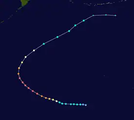 | Peak intensity | 185 km/h (115 mph) (1-min) 915 hPa (mbar) |