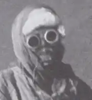 In 1993 Marshall made a discovery of a photograph of Compagnoni (below) taken on the summit which had not been included in La Conquista del K2 where a much poorer image had been shown. According to Marshall Compagnoni has his oxygen set on the ground but he is wearing his breathing mask with its connecting tube still attached to the cylinders. This suggested that Compagnoni was still breathing supplementary oxygen on the summit. Also, the photograph that had been published of Lacedelli seemed to show frost marks on his beard consistent with his mask having recently been taken off (also below).[57][58]