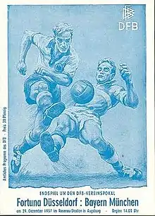 The 1957 DFB-Pokal Final decided the winner of the 1956–57 DFB-Pokal, the 14th season of Germany's knockout football cup competition. It was played on 29 December 1957 at the Rosenaustadion in Augsburg.[2] Bayern Munich won the match 1–0 against Fortuna Düsseldorf, to claim their 1st cup title.