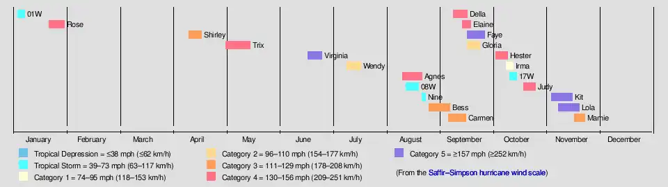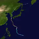 Virginia was an early season typhoon. It destroyed 1,000 buildings and killed 86 people as it sliced through Taiwan and southern Japan. The storm left $20 million (1957 USD) in damage.[6]