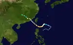 Irma formed on October 9, west of the Philippines. The tropical cyclone strengthened to a category one typhoon with maximum sustained winds of 85 mph and a minimum central pressure 990 mbar. It moved west, and hit Vietnam with 80 mph winds and a minimum central pressure of 995 mbar. It dissipated on October 13, over the Thailand–Laos border.