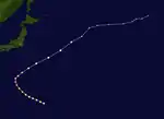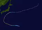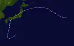 A disturbance close to Japan's coast developed into a tropical depression on August 22, and became a tropical storm 6 hours later. It managed to achieve a minimum central pressure of 999 mbar before it struck the southeastern portion of Japan. It weakened to a tropical depression shortly before landfall though, and became extratropical the next day. But its extratropical remnants continued to move north-northeast, then northeast, and then east-northeast until it dissipated on August 27.