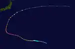 Hester formed on October 3, several hundred miles east of the Philippines. At first, it slowly intensified, then rapid intensification occurred, reaching its peak strength of 150 mph while southeast of Japan. It then gradually weakened, weakening to a tropical storm southeast of the Kamchatka Peninsula. It then further weakened, dissipating just north of the Aleutian Islands.