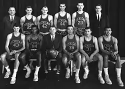 The 1958–59 Michigan Wolverines men's basketball team represented the University of Michigan in intercollegiate college basketball during the 1958–59 season. The team played its home games at Fielding H. Yost Field House (renamed Yost Ice Arena in 1973) on the school's campus in Ann Arbor, Michigan. Under the direction of head coach William Perigo, the team finished tied for second in the Big Ten Conference but failed to get an invitation to either the 1959 NCAA Men's Division I Basketball Tournament or the 1959 National Invitation Tournament.[1] During the season, the team beat two of the four ranked opponents that it faced (#18 Purdue in the conference season opener on January 3, 1959, at West Lafayette and #18 Illinois on February 2 in Champaign).[2] M.C. Burton, Jr. won the Big Ten Conference statistical championships for both scoring (22.6 points per game) and rebounding (249 in 14 conference games for a 17.8 rebound average).[3][4] The 17.8 rebounds per game was a Big Ten Conference record that lasted one season.[5] Burton was the first player to lead the conference in both scoring and rebounding.[6] Burton and George Lee served as team co-captains, and Burton earned team MVP.[7]