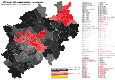 The 1958 North Rhine-Westphalia state election was held on 6 July 1958 to elect the 4th Landtag of North Rhine-Westphalia. The outgoing government was a coalition of the Social Democratic Party (SPD), Free Democratic Party (FDP) and Centre Party led by Minister-President Fritz Steinhoff.