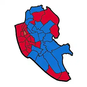 ![]() Map of Liverpool showing wards won (first placed party)[1] | ||