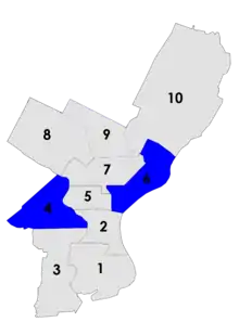 Michael J. Towey died on September 29, 1960, also of a heart attack.[3] Towey had represented the 6th district, which covered Kensington, Port Richmond, and Frankford, also since 1951. He had won convincingly in his most recent election, carrying 60% of the vote over his Republican opponent.[2]