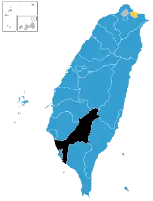 Kaohsiung mayoral election, in contrast, was relatively calm as "local faction" sent Chen Chi-chuan, whose family was close to President Chiang,[31] to run for mayor, which was endorsed by Kuomintang. Despite unwilling to stand in the election, Chen conceded to party's pressure and was elected without contest after Yang Chin-hu (楊金虎) of the opposition withdrew.[32][33]