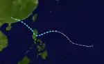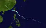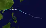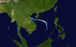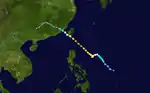 On September 4, a low developed off of the eastern coast of the Philippines. Upon crossing into the South China Sea, the low became more organized and started dropping in pressure. On September 8, the system was upgraded to a tropical storm. The system continued to strengthen, and on September 9, it was designated as a typhoon by the JTWC. Typhoon Olga made landfall 50 kilometers to the northeast of Hong Kong, killing 7 people, mostly due to landslides. The system rapidly deteriorated over land and dissipated 180 kilometers to the northwest of Hong Kong.[7][8]