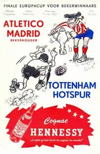 The 1963 European Cup Winners' Cup Final was the final football match of the 1962–63 European Cup Winners' Cup and was the third European Cup Winners' Cup final. It was contested between Tottenham Hotspur of England and the defending champions, Atlético Madrid of Spain, and was held at Feijenoord Stadion in Rotterdam, Netherlands. Tottenham won the match 5–1 thanks to goals by Jimmy Greaves (2), John White and Terry Dyson (2). Tottenham's victory made them the first British team to win a major European trophy.