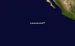 Tropical Storm Jennifer–Katherine moved through the Eastern Pacific in mid-September. It moved northward, and hit Baja California on September 18, bringing heavy rain to Southern California. A total of 6.5 inches (165 mm) fell in the mountains of southern California from the storm.[2] The storm had two names operationally because the NHC had assumed that Jennifer dissipated and that Katherine was a new storm, but reanalysis revealed that it was one storm.