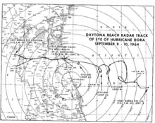 - George Cry (1964). Hurricane Dora, August 28 – September 16, 1964 (PDF). United States Weather Bureau (Report). Silver Spring, Maryland: National Oceanic and Atmospheric Administration. Archived from the original (PDF) on May 5, 2017. Retrieved April 29, 2021.