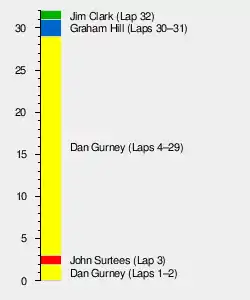 | 1 | 23 | Lotus-Climax | 32 | 2:06:40.5 | 6 | 9 | |
