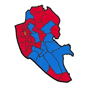 ![]() Map of Liverpool showing wards won (first placed party)[1] | ||