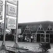 Fairgoers could also enjoy sampling sandwiches from around the world at the popular 7-Up International Sandwich Garden Pavilion which featured the innovative fiberglass Seven Up Tower.[42][43] In addition to all the 7-Up beverages one could drink, fair-goers were invited to sample varied culinary delights representing sixteen countries. While dining, visitors enjoyed live performances on four circular stages from various instrumentalists which included a five piece musical ensemble, the 7-Up Continental Band. The musical programs included popular show tunes from the Broadway stage in America, as well as musical favorites from both Europe and Latin America. The soloist John Serry Sr. appeared regularly with the orchestra to complement the international flavor of the musical program.[44][45] The dining pods featured furnishings designed by the futuristic Finnish-American architect Eero Saarinen and were enclosed by twenty-four futuristic fiberglass domes that were topped by a commanding clock tower that soared more than 107 feet (33 m) above the entire pavilion.[46][47][48]