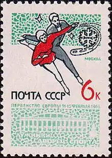 ![]() A Soviet stamp dedicated to the 1965 European Figure Skating Championships | |
