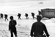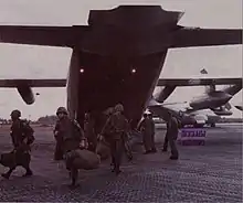 ![]() US Army soldiers disembarking from helicopters in the Ia Drang Valley | |||