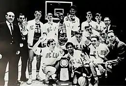 In the NCAA West Regional at Corvallis, Oregon, the Bruins beat Wyoming (109–60) and Pacific (80–64).[2][3] The Final Four was played in Louisville, Kentucky, where UCLA defeated Houston (73–58) and Dayton (79–64).[4]