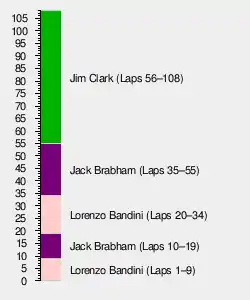 | 6 | 2 | Lotus-Climax | 101 | + 7 laps | 19 | 1 | |