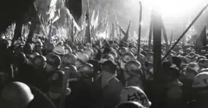 By the end of 1969, the students had been broken. Many barricades had been dismantled, and violence slowly dissipated.[67] The National Zenkyōtō, formed in 1969, whose activity peaked in September with a rally held in Hibiya Park,[68] fractured from infighting. Movements became isolated.[69] Despite the destruction of any unity between Zenkyōtō, students continued to riot in the streets, with their more of their attention turned to concerns like the war in Vietnam and the upcoming renewal of the Anpo treaty.[70] In 1970, the situation on campuses returned to normal.[71]