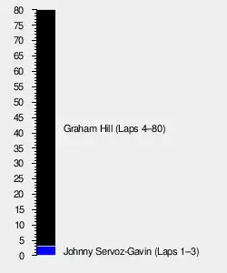 Johnny Servoz-Gavin took the lead from Hill at the start, while Bruce McLaren took out the other Lotus of Jackie Oliver at the chicane on the first lap. Servoz-Gavin was struck by bad luck on lap 3 when he suffered a drive shaft failure and crashed. This set the tone for the rest of the race, when after a series of accidents and mechanical failures, only five cars finished the race, with everyone from 3rd-place finishing at least four laps down on eventual winner Hill, who cemented his reputation as "Mr. Monaco"[4] by taking his fourth win in the principality. It was however a close finish, with BRM replacement Richard Attwood surprising by finishing just 2 seconds behind the Englishman. Even though Hill broke the Monaco lap record three times during the race, it was Attwood who ultimately recorded fastest lap, the only one of his career.[3] This would also be his one and only podium finish at a Formula One race, just as for Belgian Lucien Bianchi, who finished third.