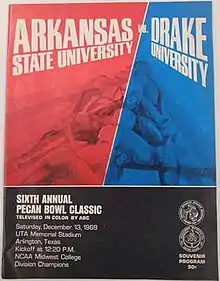 The 1969 Pecan Bowl was a college football bowl game played between Drake Bulldogs and Arkansas State Indians at Memorial Stadium in Arlington, Texas.[1][2] It was one of four regional finals in the NCAA College Division, which became Division II (and III) in 1973. The other three regional finals in 1969 were the Boardwalk, Grantland Rice, and Camellia bowls.[3]