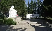 Vasily Margelov, Commander of the Airborne Forces and General of the Army, decided that a memorial would be constructed in memory of the fallen soldiers. Money was raised for the construction of a monument to the dead soldiers. In total, 250 thousand rubles were collected. A year after the disaster, the memorial was constructed at the site the An-12 crashed. The monument, designed by Yevgeny Vuchetich, depicts a kneeling mother and paratrooper and contains the inscription: Eternal memory to the heroes-paratroopers and pilots. Next to the monument is a platform with 96 marble slabs, each with naming a soldier killed in the accident.[6][7]