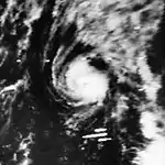 On October 12, a subtropical depression developed while located northeast of the Bahamas. It steadily intensified and became a subtropical storm by the following day. After tracking east-northeastward, the storm made a sharp westward turned, followed by a curve to the north-northeast. After fully acquiring tropical characteristics, the subtropical storm transitioned into a tropical cyclone early on October 16. Twelve hours later, the storm strengthened into a hurricane,[3] shortly before passing near Bermuda.[51] It continued to intensify and briefly became a Category 2 hurricane on October 17. The hurricane then accelerated rapidly northeastward,[3] and made landfall on the Avalon Peninsula of Newfoundland as a Category 1 hurricane. Shortly thereafter, the hurricane transitioned into an extratropical cyclone on October 17.[3][52]