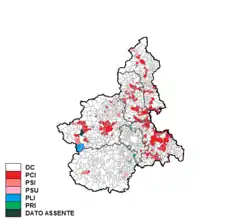 Christian Democracy was by far the largest party and, after the election, it formed a government along with the Italian Socialist Party, the Unitary Socialist Party and the Italian Republican Party (organic Centre-left). The regional government was led by Edoardo Calleri di Sala until 1973 and then by Gianni Oberto Tarena, both Christian Democrats.