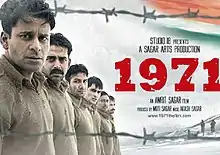 1971 is a 2007 Indian Hindi-language war drama film directed by Amrit Sagar, and written by Piyush Mishra and Amrit Sagar, based on a true story of prisoners of war after the Indo-Pakistani War of 1971. The film features an ensemble cast of Manoj Bajpayee, Ravi Kishan, Piyush Mishra, Deepak Dobriyal and others. At the 55th National Film Awards, it won the National Film Award for Best Feature Film in Hindi[1] The film is an account of the escape of six soldiers of the Indian Army taken as prisoners of war by the Pakistani Army, during the Indo-Pakistani War of 1971 that was preceded by rebellion of East Pakistan to separate itself from West Pakistan and create a new country.[2]