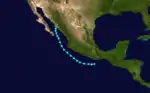 | Katrina | August 8 – 13 | Tropical storm | 65 (100) | 1008 | Mexico | Unknown | 0 | |||