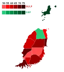 | Grenada National Party | 14,086 | 41.13 | 2 | –1 | |