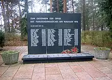 At the Wildau Cemetery, close to Königs Wusterhausen, a memorial commemorates the victims whose names are written on a black stone marker.