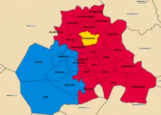 ![]() Map showing the results of the election in each ward. Colours denote the winning party as shown in the main table of results. | |||||||||||||||||