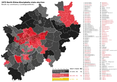 The opposition Christian Democratic Union (CDU) remained the largest party and improved its lead over the SPD, but failed to win an overall majority. The incumbent coalition retained the 105-seat majority it had won at the previous election, with a net shift of three seats from the SPD to the FDP. Turnout increased dramatically to 86.1%, the highest ever recorded in the state. The SPD–FDP coalition was renewed and Heinz Kühn was re-elected as Minister-President by the Landtag on 4 June.[1]