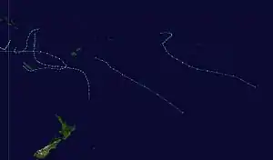 | Pat | March 17 – 18 | Category 2 tropical cyclone | 100 km/h (65 mph) | 980 hPa (28.94 inHg) | [5] | |||