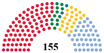 All 155 seats in the Norwegian Parliament 78 seats were needed for a majority | |||||||||||||||||||||||||||||||||||||||||||||||||||||||||||||||||||||