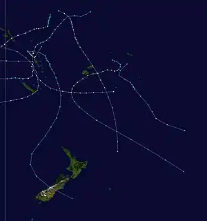 | Fay | December 27 – 31 | Category 2 tropical cyclone | 100 km/h (65 mph) | 980 hPa (28.94 inHg) | ||||
