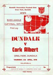 The League Cup was the first trophy of the 1977–78 League of Ireland season. The two sides had already met twice that season in the League, with the Cork side winning both matches.[2] Dundalk were appearing in their first final in the competition, which had replaced the League of Ireland Shield in 1973. They reached the final by defeating Shelbourne (2–1), Shamrock Rovers (1–0), Home Farm (1–0), and Sligo Rovers (on penalties after a 3–3 aggregate draw across two legs).[3]