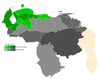 General elections were held in Venezuela on 3 December 1978.[1] The presidential elections were won by Luis Herrera Campins of Copei, who received 46.6% of the vote.[2] Although Copei received more votes, Democratic Action won the most seats in the Chamber of Deputies, whilst the two parties won 21 seats each in the Senate. Voter turnout was 87.6%.[3]