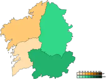 ![]() Constituency results map for the Parliament of Galicia | |||||||||||||||||||||||||||||||||||||||||||||||||||||||||||||||||||||