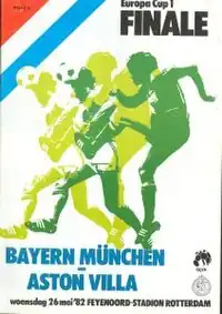The 1982 European Cup final was played on 26 May 1982. Football League First Division winners Aston Villa defeated Bundesliga winners Bayern Munich 1–0 at De Kuip in Rotterdam, Netherlands to win the European Cup for the first time, and continue the streak of English teams winning the competition, being the sixth consecutive victory by an English side.