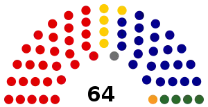 | Party | Votes | % | Swing | Seats won | Total seats | Change | ||